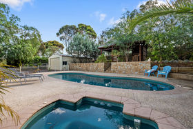 Outdoors, the property truly distinguishes itself. Fully landscaped front and rear gardens create a sense of retreat and tranquillity, complemented by clear side access leading to the rear workshop and garage. Entertaining is effortless from the private outdoor retreat, complete with a built-in bar overlooking the in-ground pool and spa, framed by a striking stone-clad feature wall.