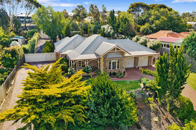 Formal living zones are enhanced by 9-foot ceilings and ornate cornices, with a dedicated lounge room offering a classic and elegant setting. Comfort is assured year-round with ducted heating, ducted refrigerated cooling, ceiling fans, and the added efficiency of solar power.