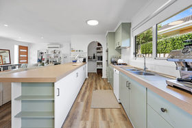 Inside is open and light-filled throughout the spacious kitchen, dining and lounge area, complete with reverse-cycle heating and cooling. The kitchen is well equipped with generous bench space, dishwasher, large walk-in pantry, gas cooktop with electric oven and overlooks the living and dining ensuring you are always a part of the family.