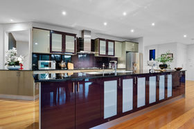 On your left you will find the fourth bedroom, which is currently being used as an office space, but also offers built-in robes, while the adjacent formal dining room proposes the use of either formal dining or with the French doors enclosing the space to be easily used as the family theatre room. The massive laundry contains plenty of space, magnitude of storage and internal access to your oversized triple car garage with a further two store rooms and mud room style robes.